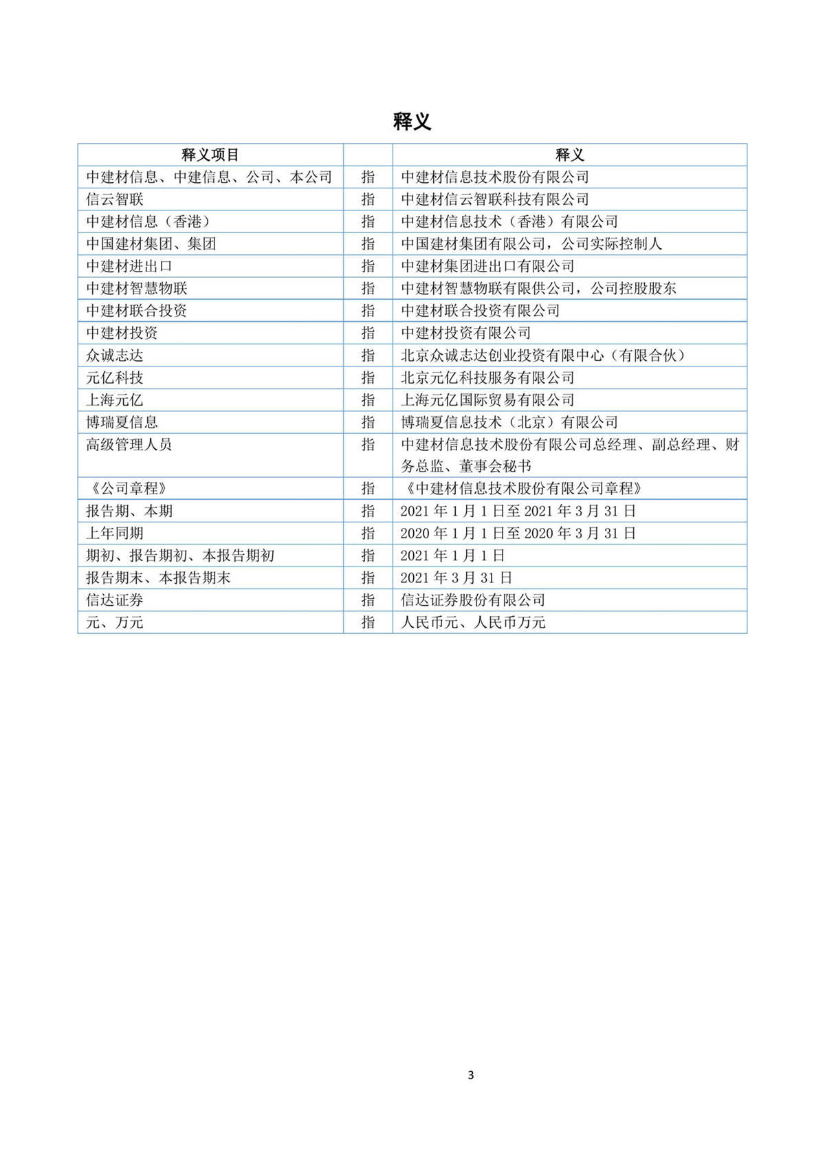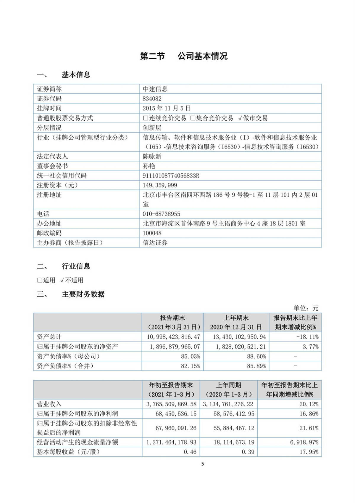 中建信息2021年第一季度報告
