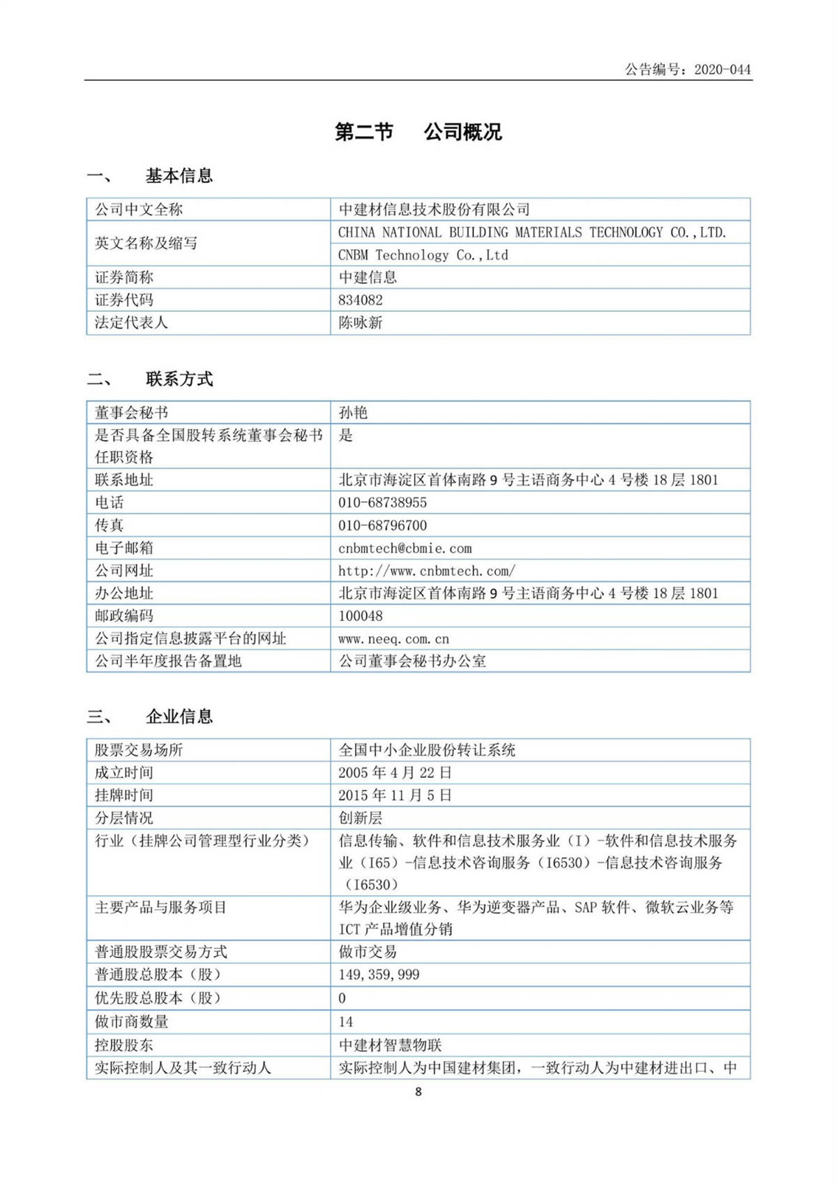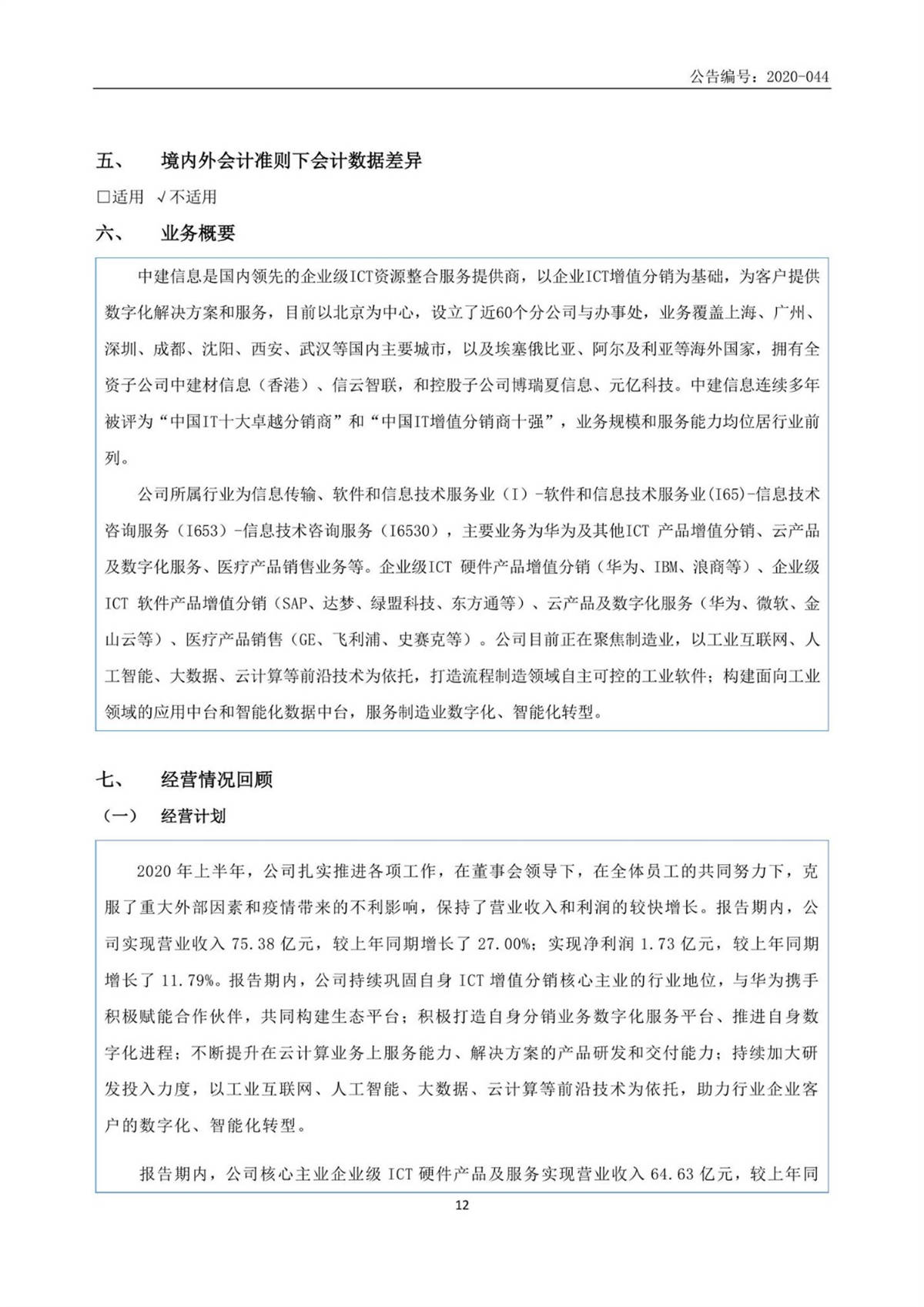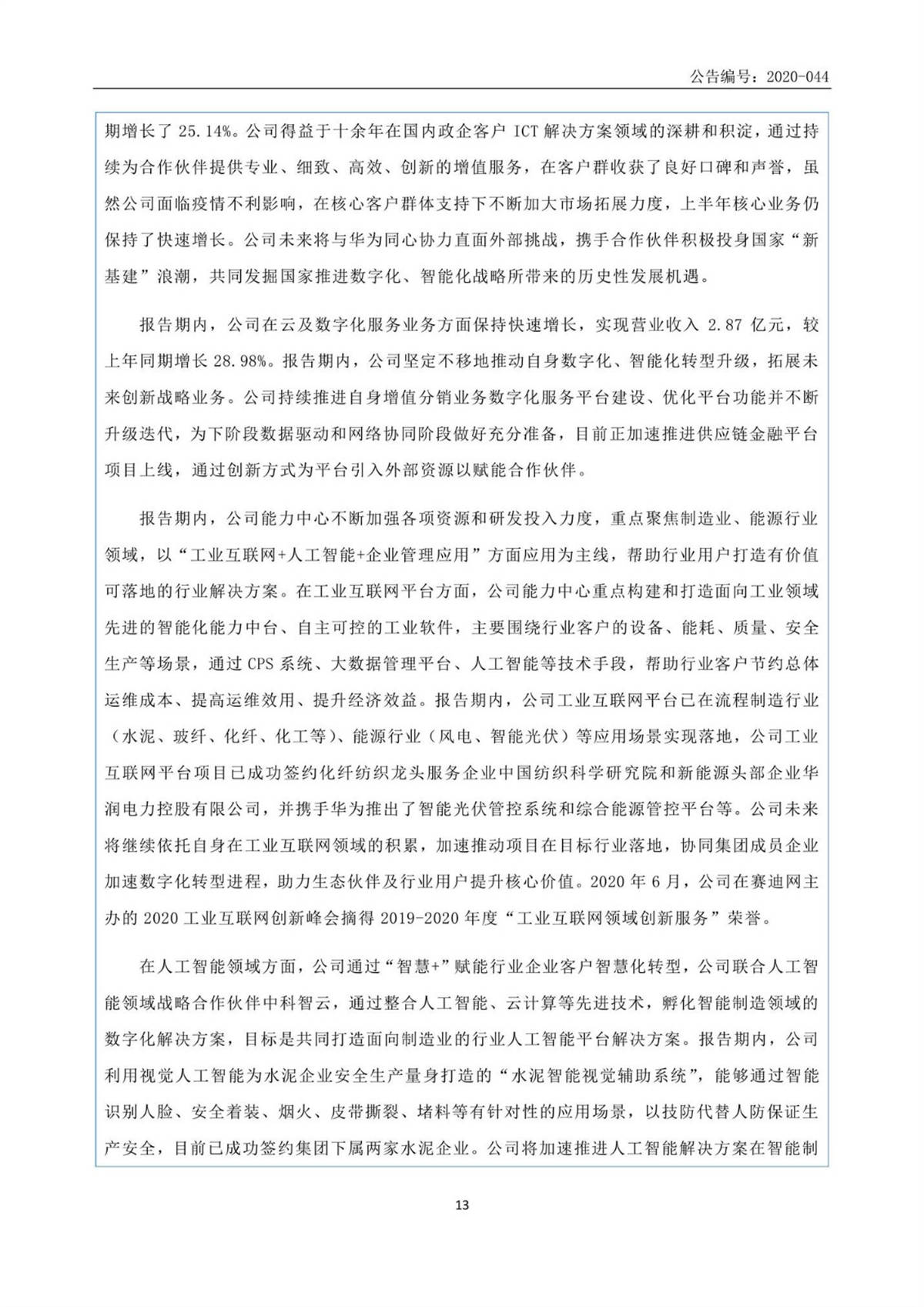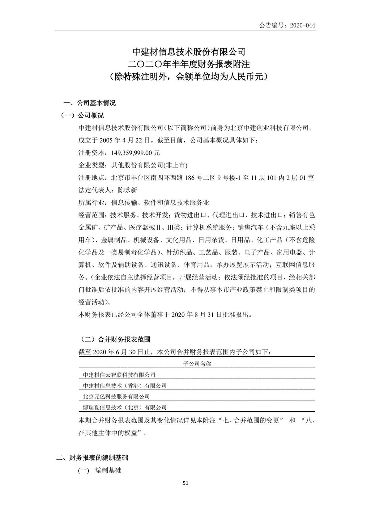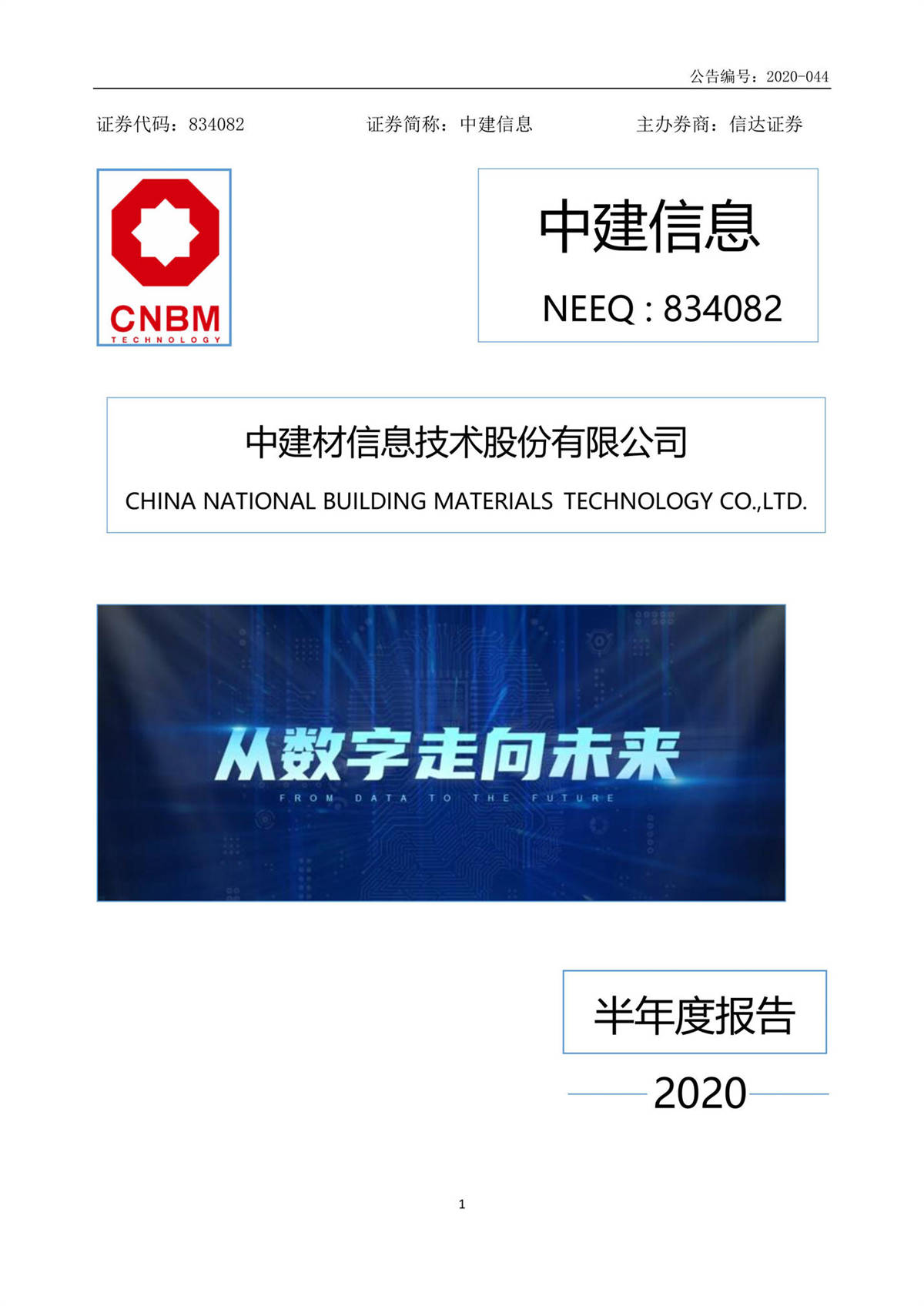 中建信息2020年半年度報告