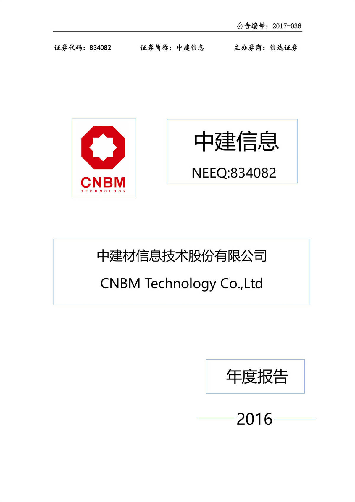中建信息2016年年度報(bào)告